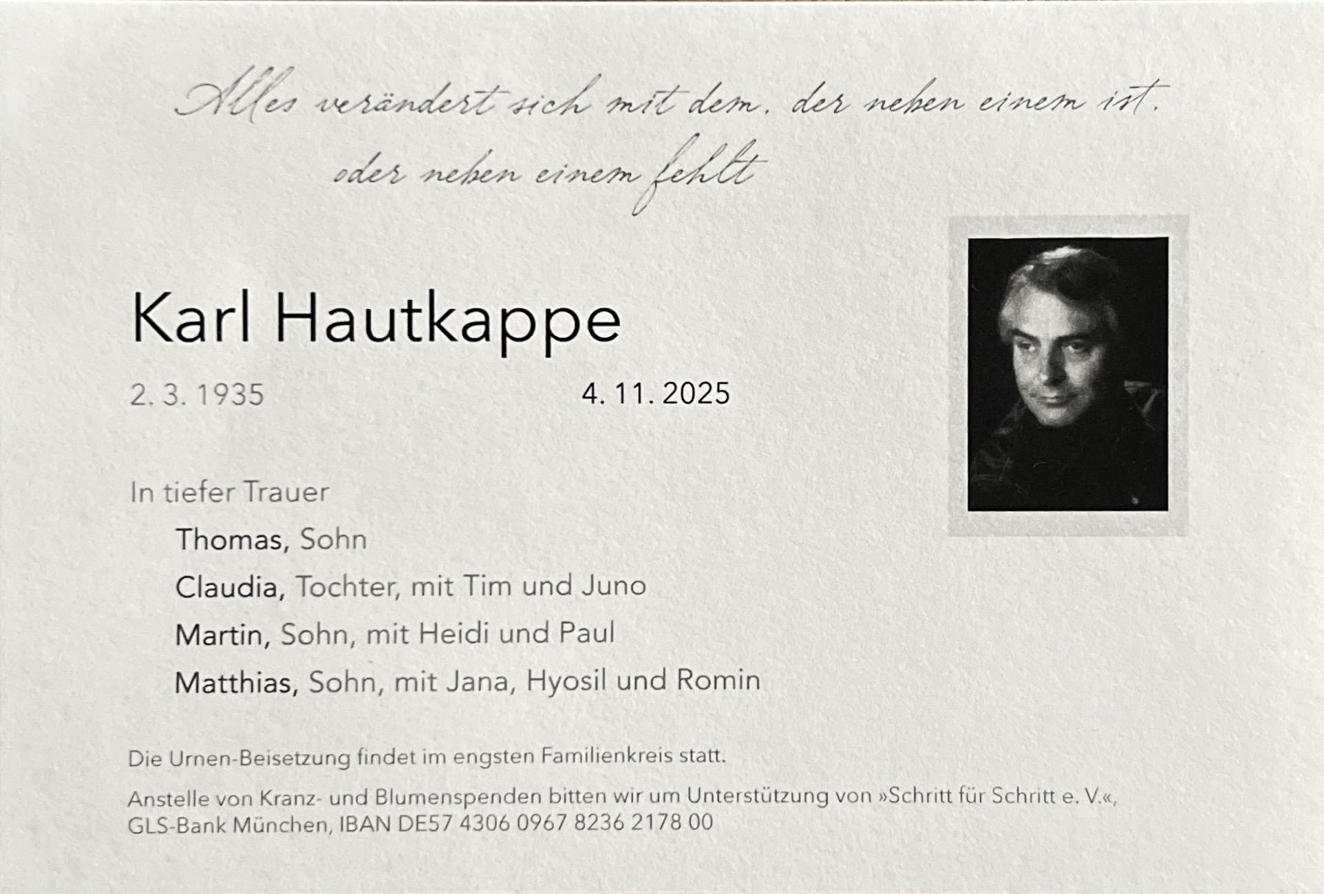 In tiefer Trauer und großer Dankbarkeit nehmen wir Abschied. - Servus, Karl.