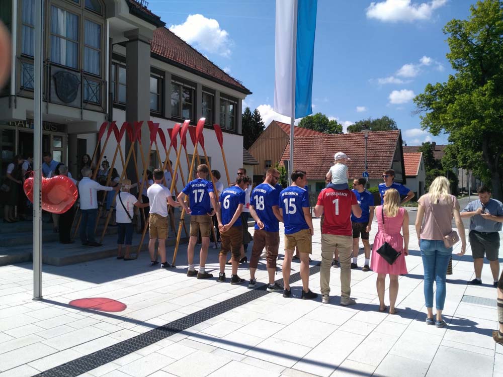 Der Ruderverein ehrte sein Mitglied Melanie Würz (Harfmann) nach der Trauung mit einem Spalier. Die hübsche Braut freute sich sehr und bedankte sich bei allen Teilnehmern.